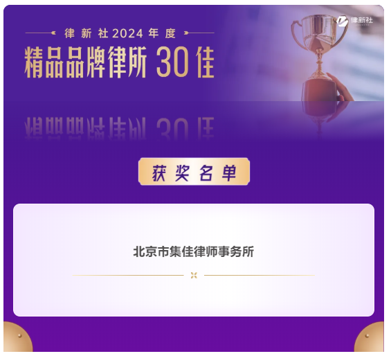 >球探体育即时比分比分>关于我们>荣誉概览>2025>球探体育即时比分比分入选律新社2024年度“精品品牌律所30佳” 集佳代理案例获评“律新社2024年度标杆案例”